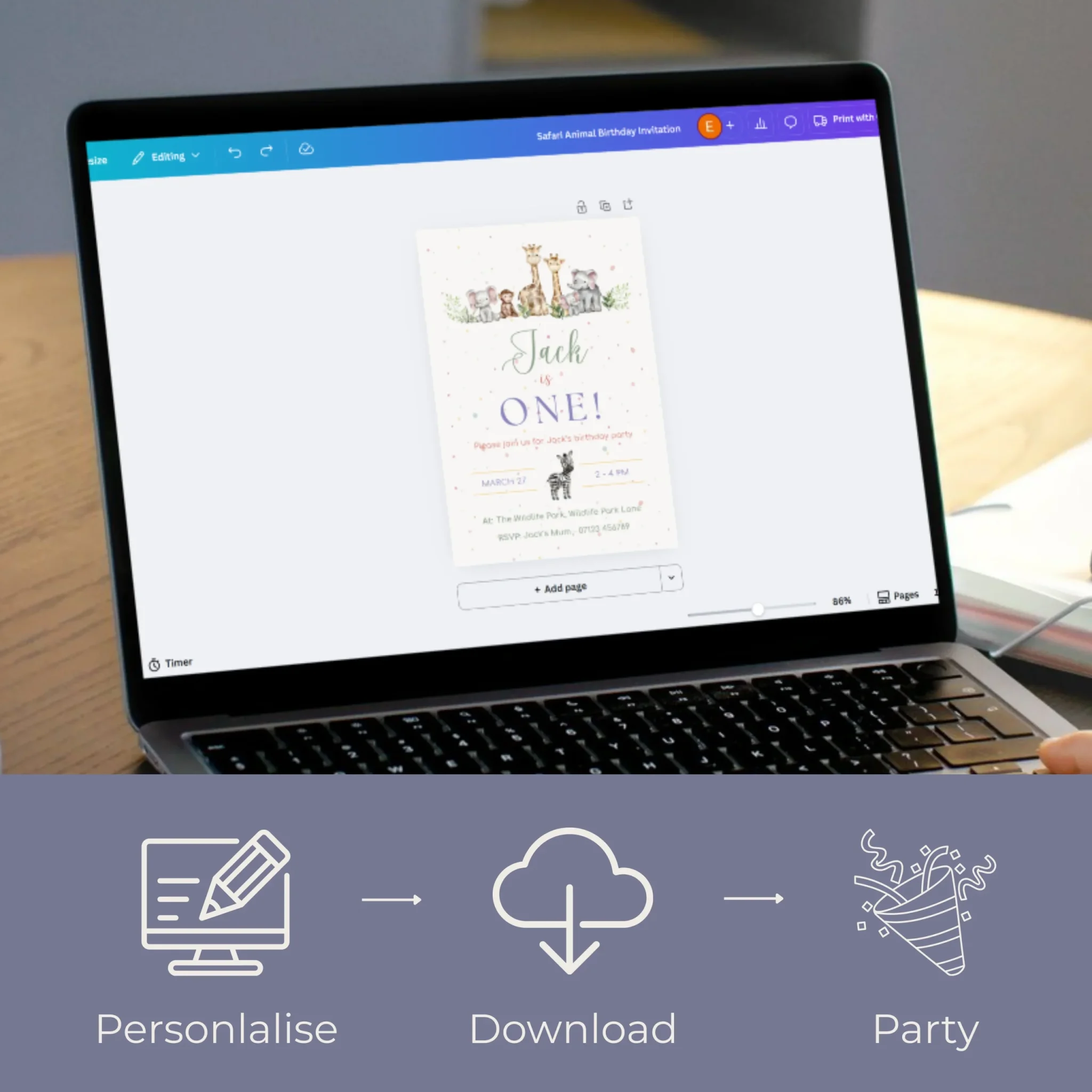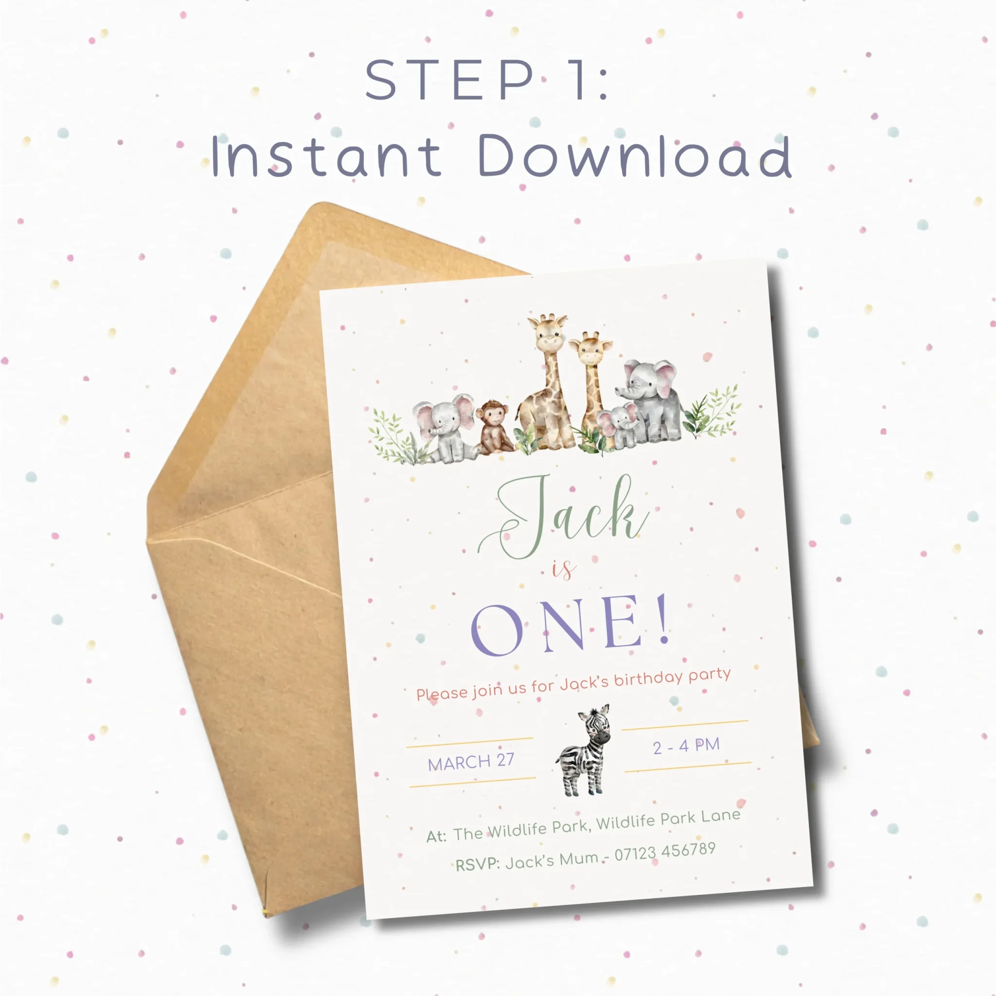 Celebrate your little one’s birthday with this Safari themed birthday Invitation, perfect for a jungle or safari-themed party 🌿🦁