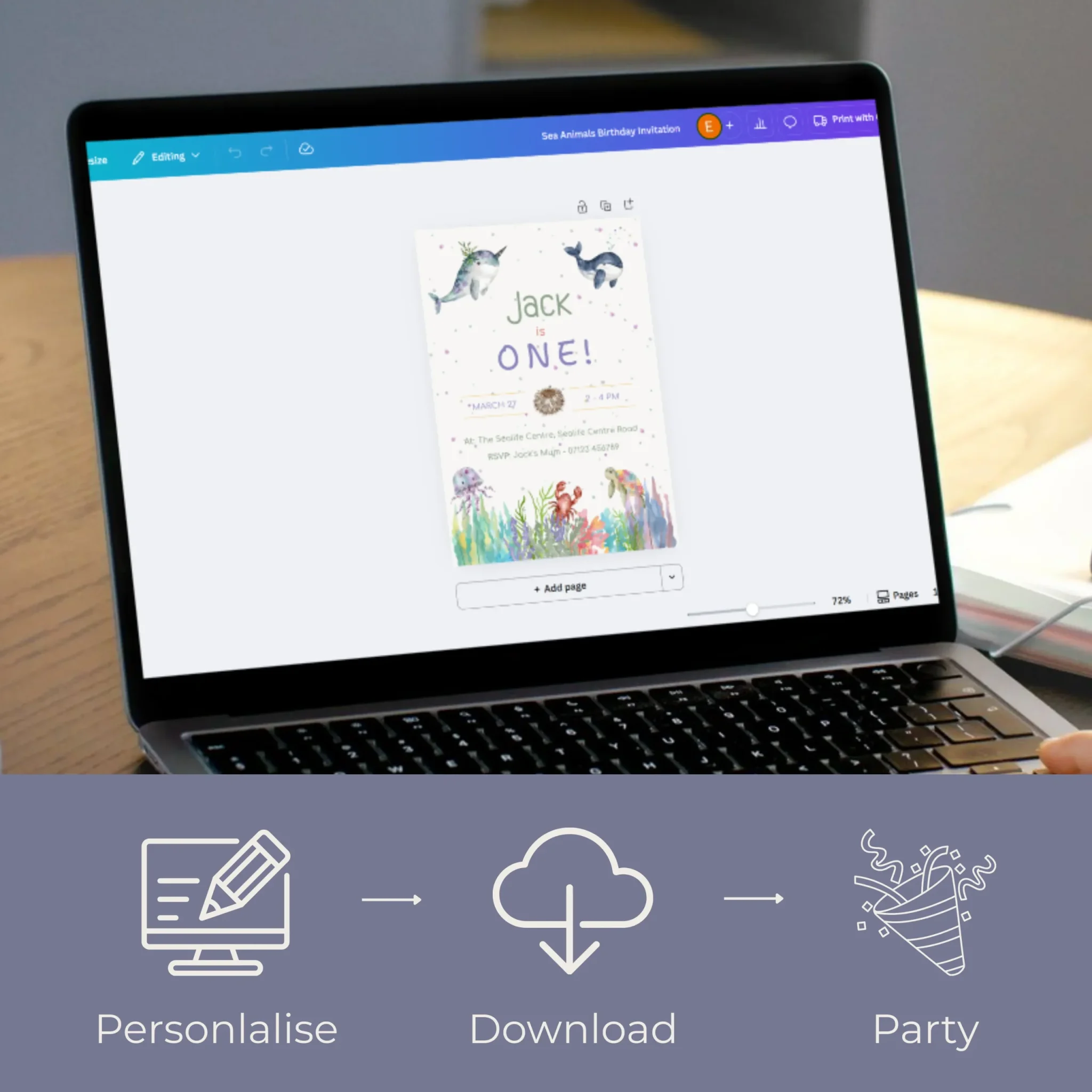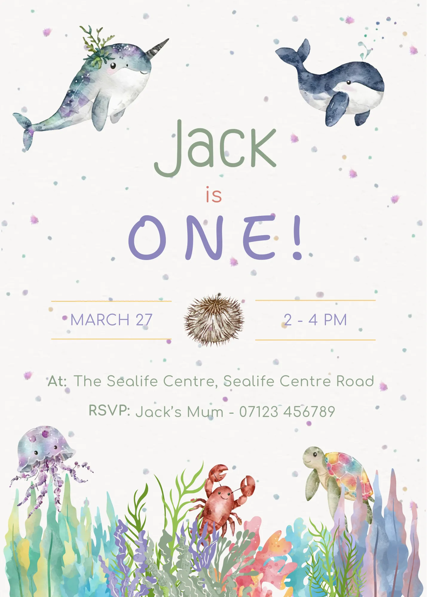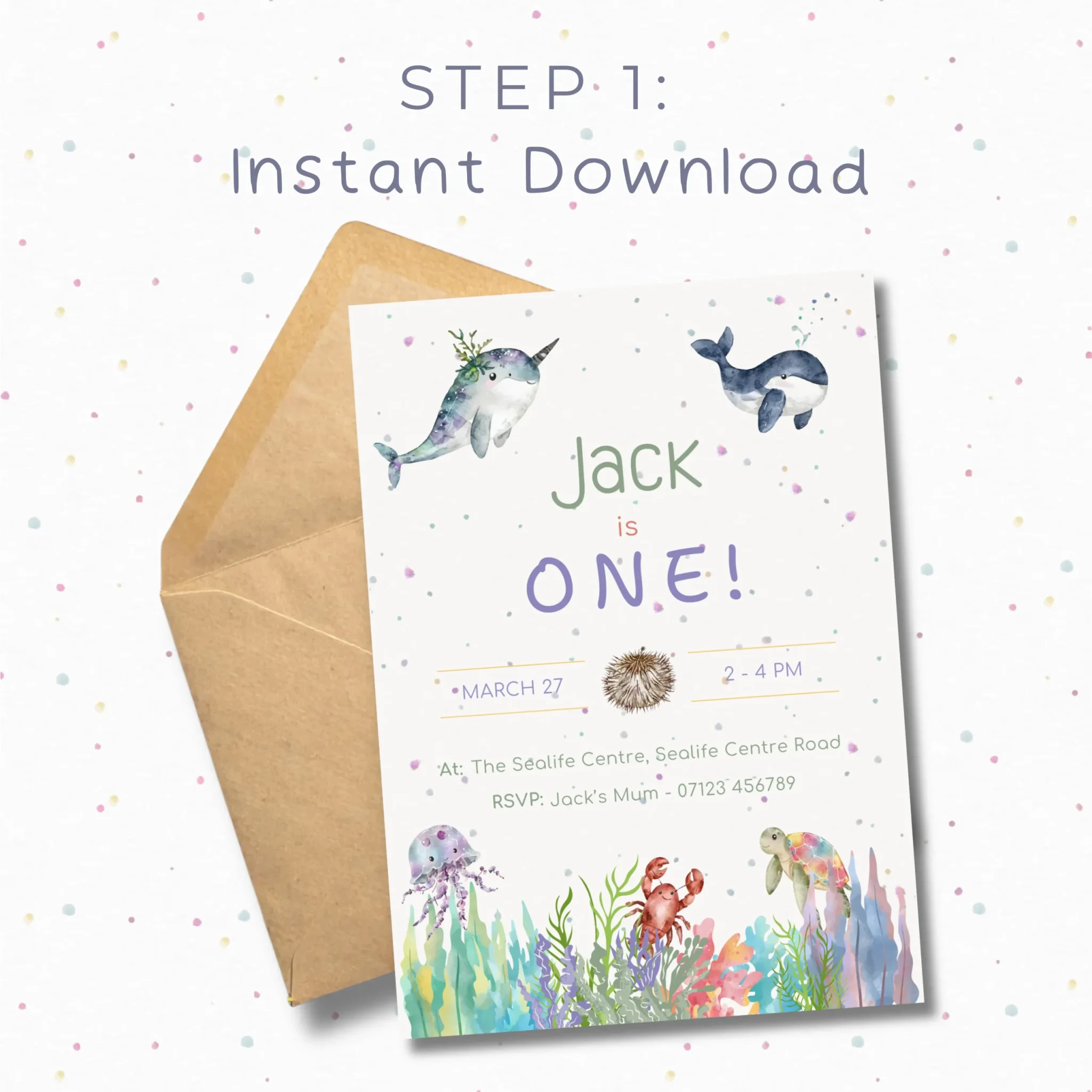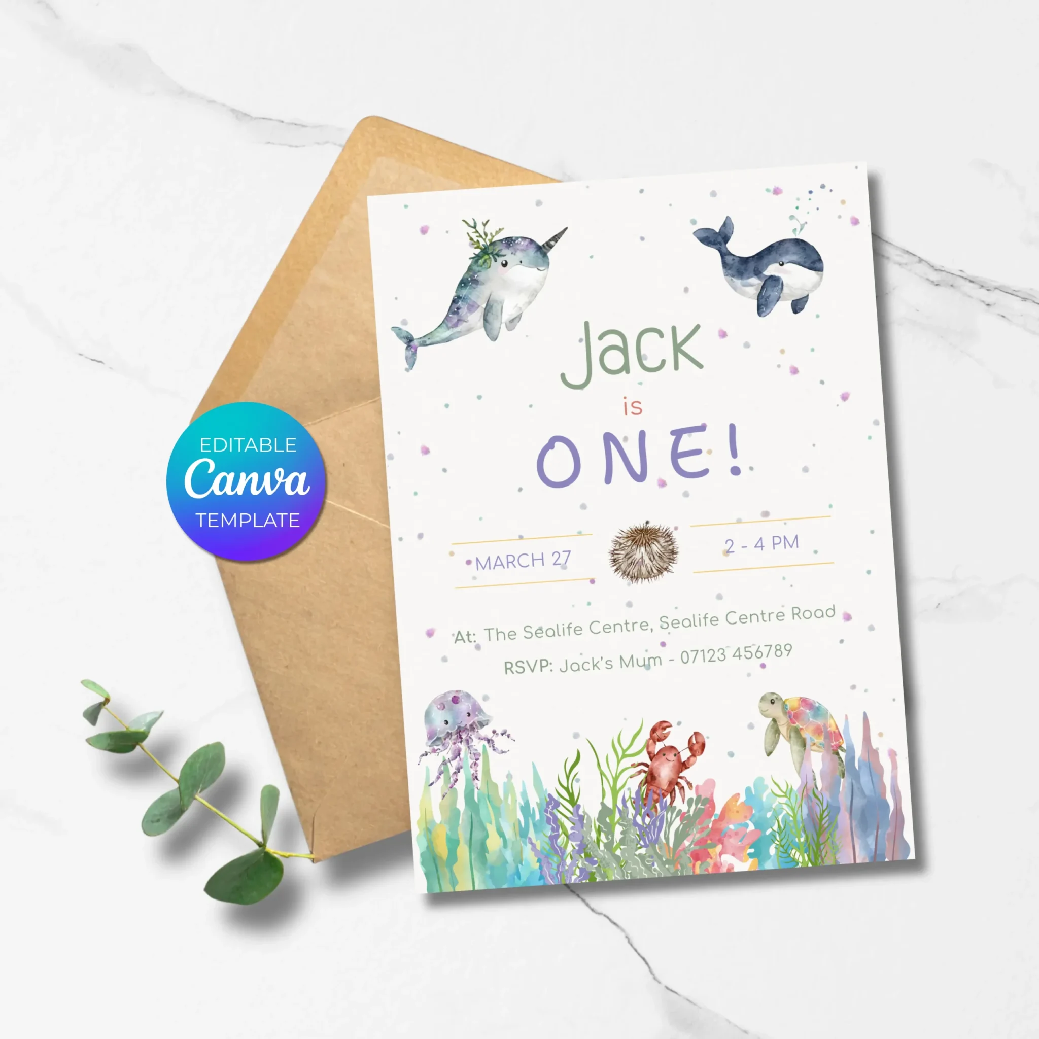 Celebrate your little oneโ€™s special day with this Sea Animals Birthday Invitation, perfect for an under the sea or ocean-themed party ๐Ÿณ๐ŸŒŠ