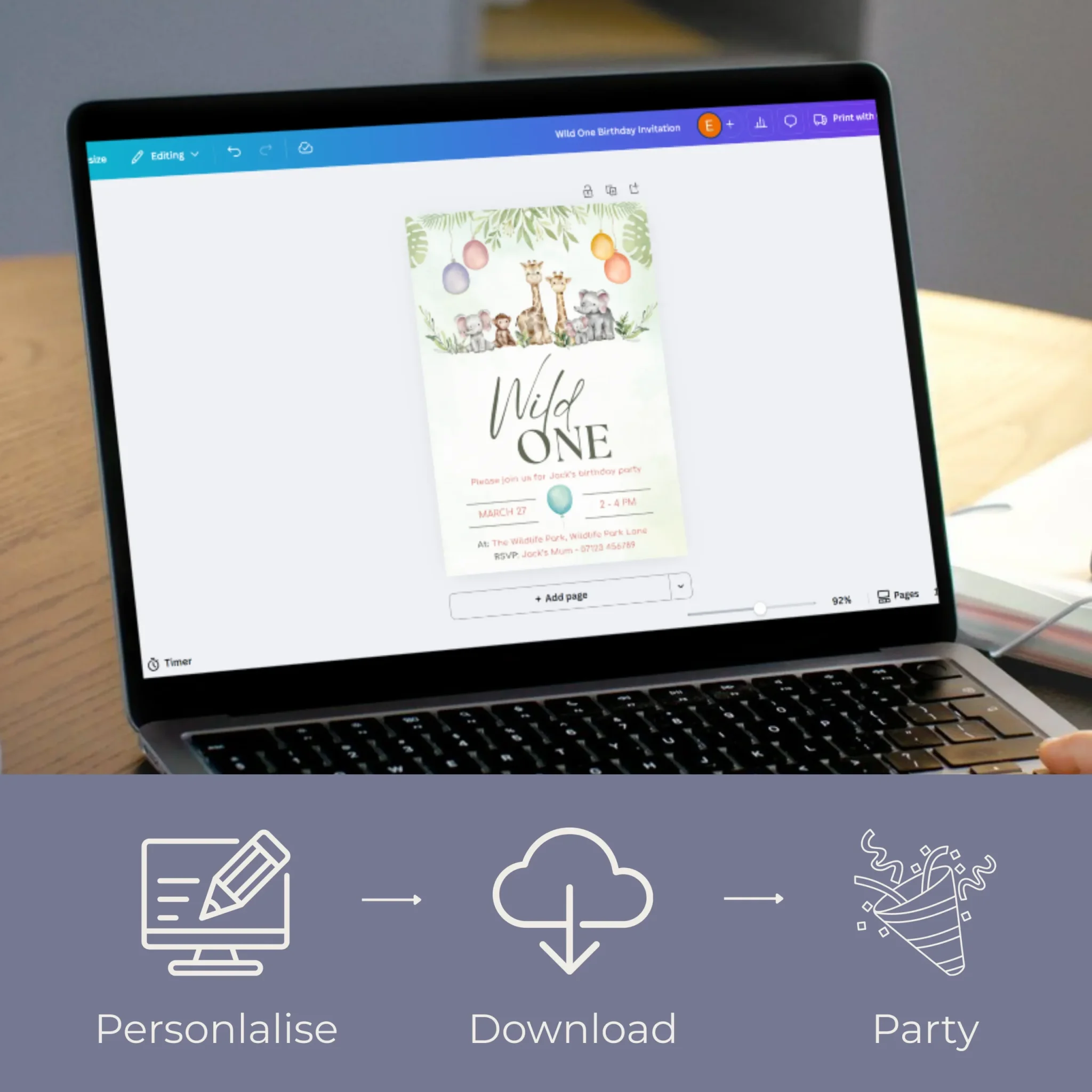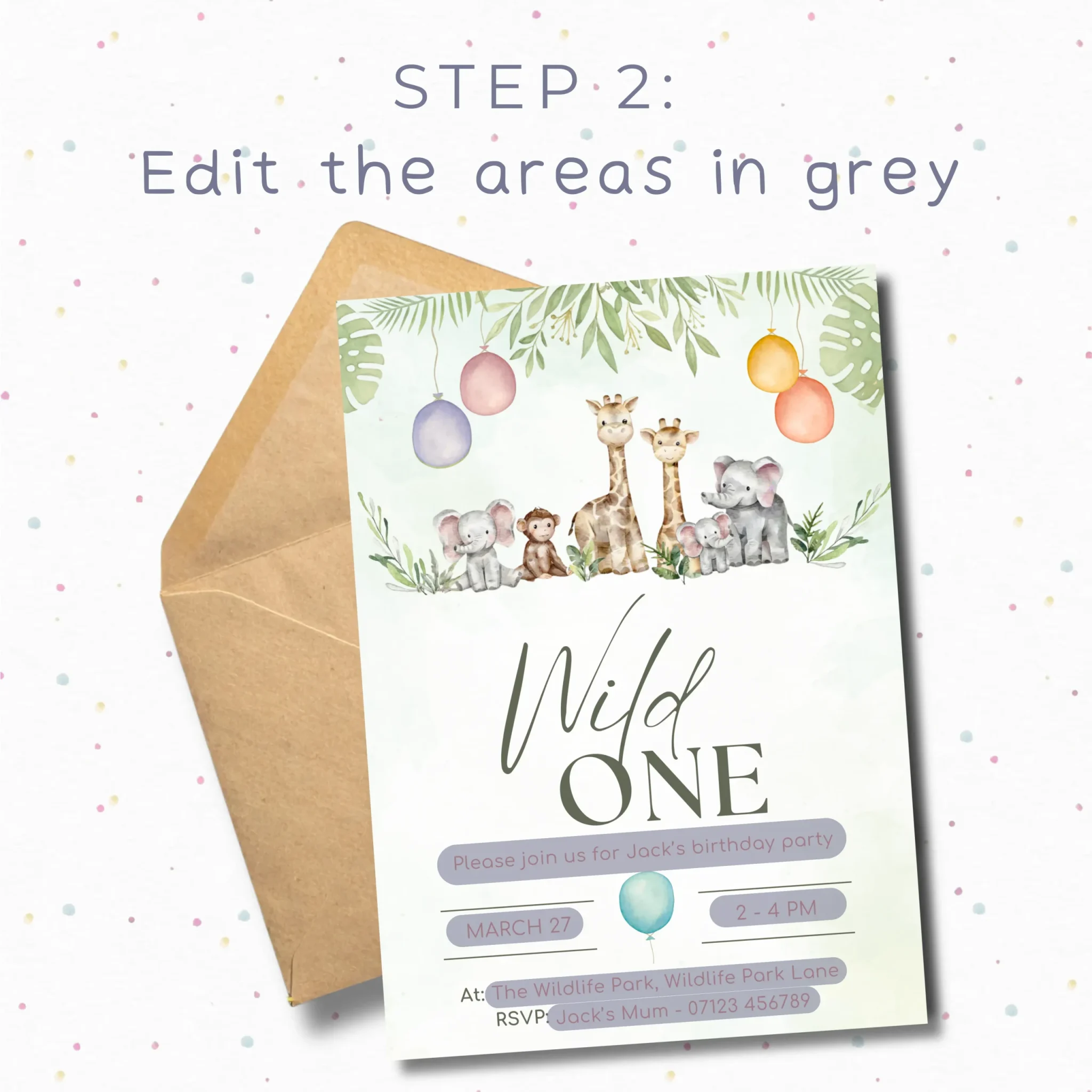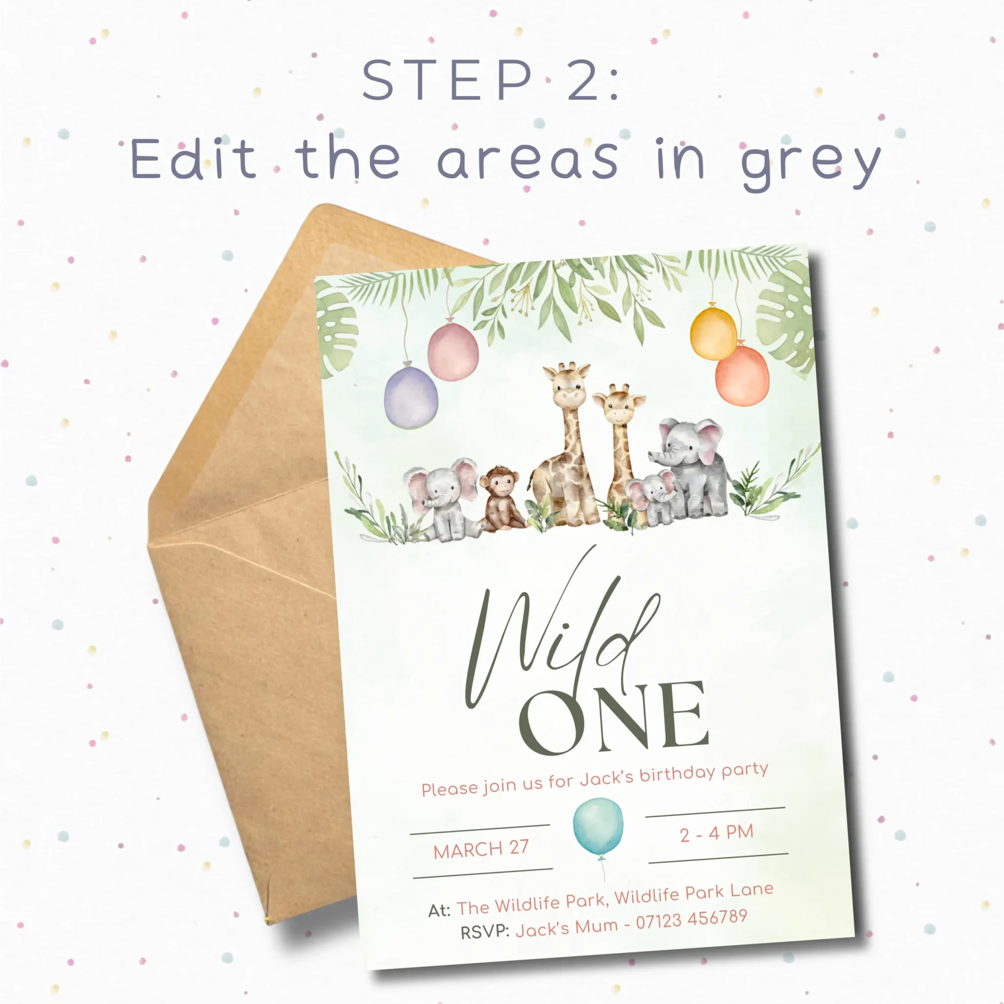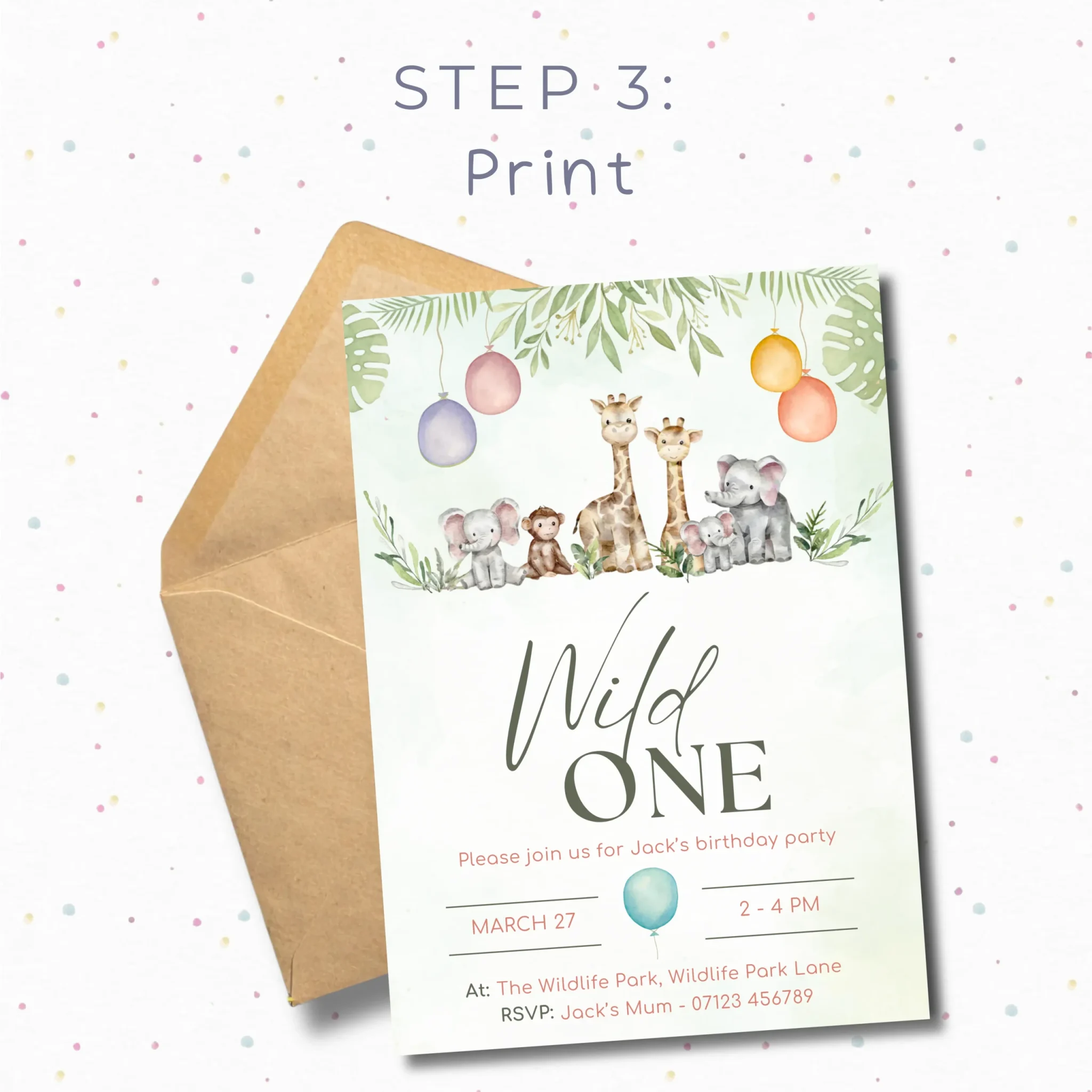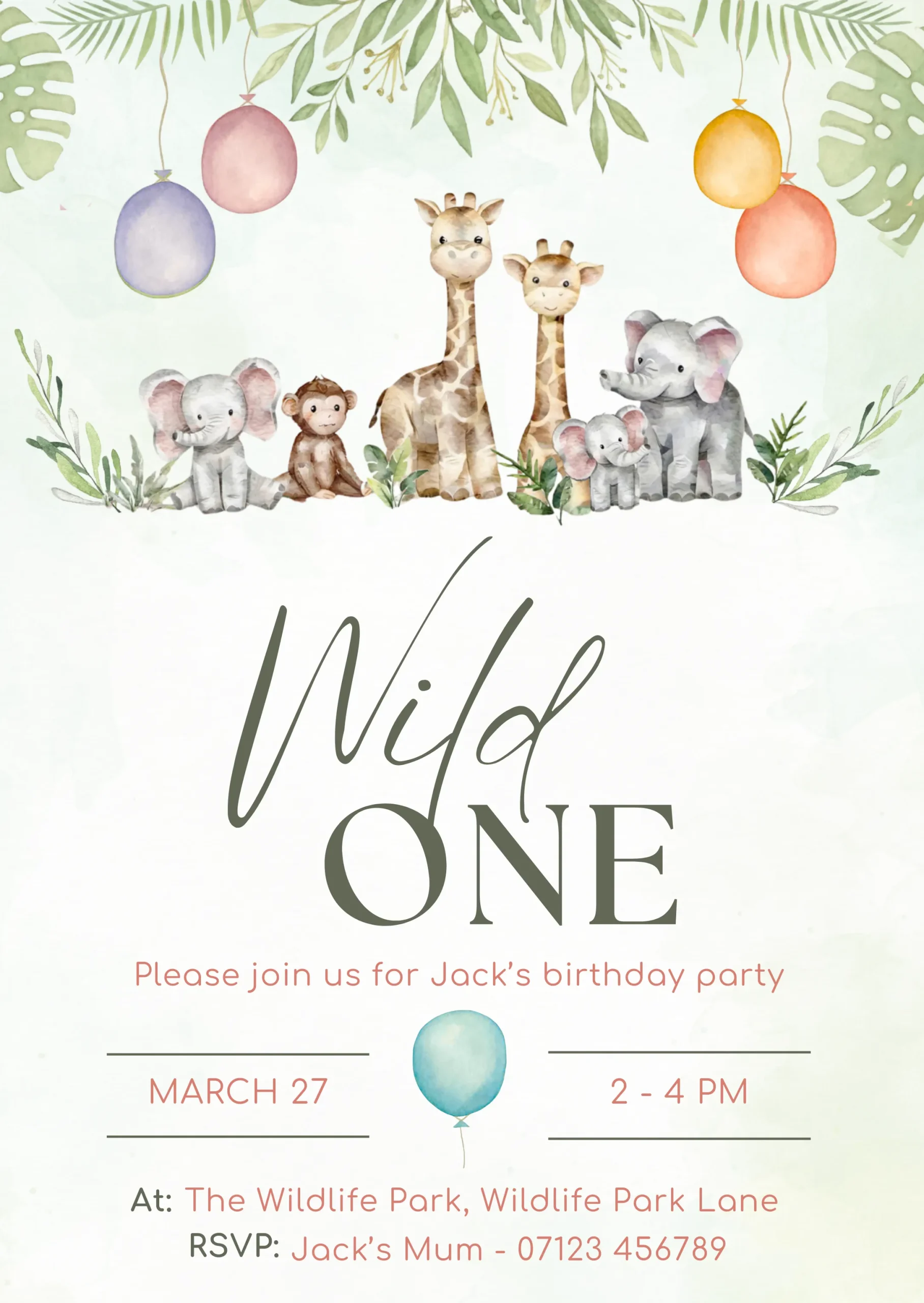 Celebrate your little one’s birthday with this Wild One Birthday Invitation, perfect for a jungle or safari-themed party 🌿🦁